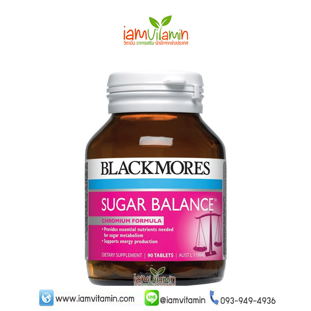 Blackmores Sugar Balance 90 Tablets สำหรับผู้ต้องการควบคุมน้ำหนัก ควบคุมระดับน้ำตาลในเลือด ผู้ป่วยเบาหวานและผู้ชอบทานขนมหวานทั้งหลาย แนะนำ BLACKMORES แบรนด์วิตามินอันดับหนึ่งของออสเตรเลีย ด้วยส่วนประกอบโครเมียม ซิงค์ แมงกานีส และวิตามินบีต่างๆ ช่วยในการดูดซึมน้ำตาลเข้าสู่เซลล์ ลดความรู้สึกอยากอาหารรสหวาน ช่วยให้ระดับน้ำตาลในเลือดลดลง ช่วยควบคุมน้ำหนักตัว