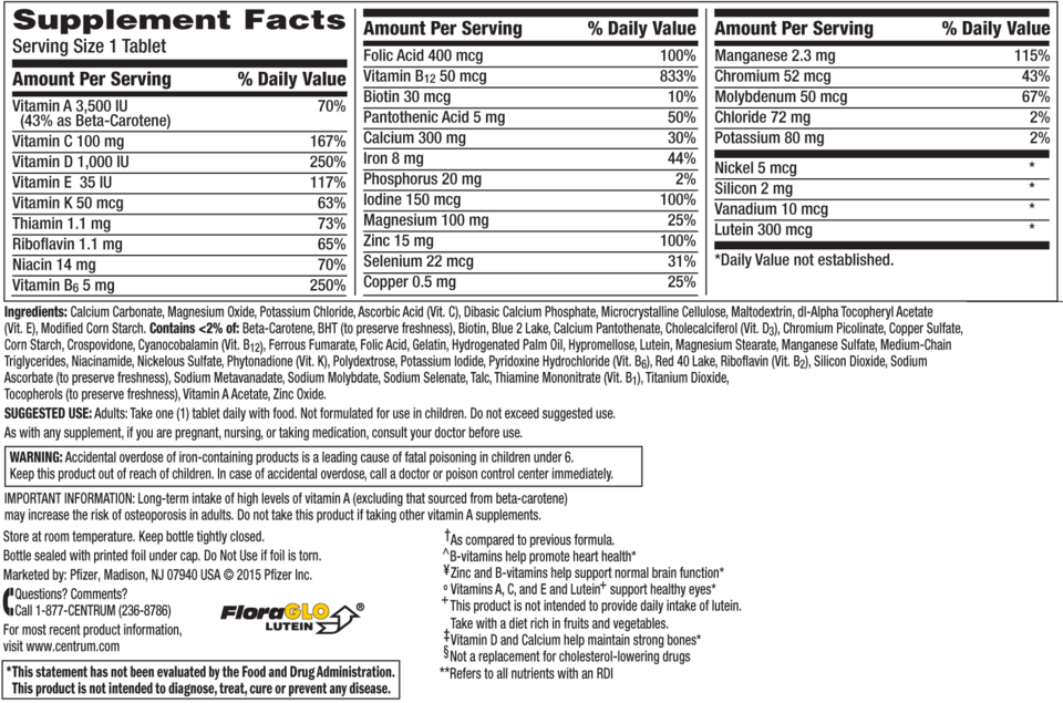 (1) Non-GMO applies to Centrum and Centrum Silver tablets only; learn more at Centrum’s official website.