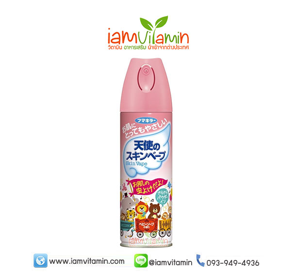 Fumakilla Skin Vape Angel Series Repellent Spray 200ml สเปรย์ฉีดป้องกันยุง ญี่ปุ่น ชนิดอัดแก็ส อ่อนโยนต่อผิวบอบบางของทารก ผลิตภัณฑ์นี้มี Hyaluronate โซเดียมที่มีผลต่อการเพิ่มความชุ่มชื้นอ่อนโยนต่อผิว.