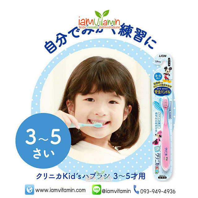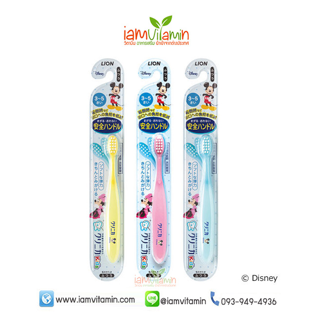 Lion Toothbrush Mickey Mouse แปรงสีฟันเด็ก มิกกี้เม้าส์ หัวแปรงงอได้ 360 องศา 3-5ปี จากญี่ปุ่น