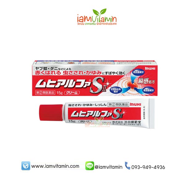 Muhi Arufa S2 รุ่นใหม่ล่าสุด ขนาด 15 กรัม รุ่นนี้ตัวยาจะแรงกว่า Muhi S ยาทาแก้ยุง มด และแมลงกัด ลดอาการแพ้ยุง ช่วยลดอาการคัน ทำให้ตุ่มแดงยุบเร็วขึ้นและยังช่วยป้องกันการเกิดรอยดำ จะได้ผลดีมากหากทาทันทีหลังโดนกัด