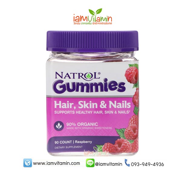 คุณสมบัติ Natrol Gummies Hair Skin & Nails Raspberry 90 Count Raspberry