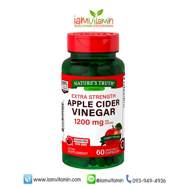Nature’s Truth Apple Cider Vinegar 1200mg 60 Capsules เนเจอร์ ทรูทร์ แอปเปิ้ลไซเดอร์ เวเนก้า น้ำส้มสายชูหมักแอปเปิ้ล อาหารเสริม น้ำส้มสายชูหมักจากแอปเปิ้ล ช่วยเร่งการเผาผลาญ ตัวนี้ลดน้ำหนักได้ดี ทำให้รู้สึกอิ่มเร็ว