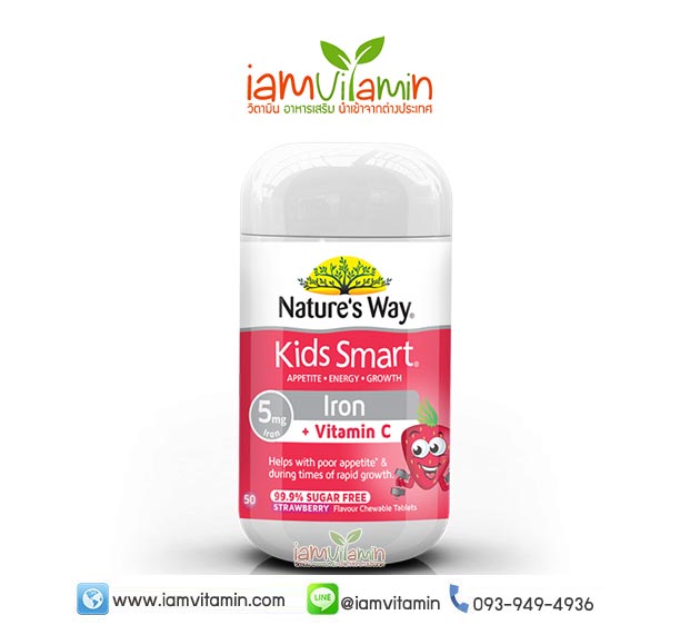 Nature’s Way Kids Smart Iron + C 50mg Chewable 50ชิ้น วิตามินเยลลี่ ธาตุเหล็ก รสสตอเบอรี่ รับประทานง่ายเหมือนขนม ช่วงสร้างพลังงาน เพิ่มการเผาผลาญ บำรุงเลือด ฟื้นฟูร่างกายหลังป่วย เพิ่มวิตามิน C 50 MG เสริมสร้างภูมิคุ้มกัน ให้แข็งแรง