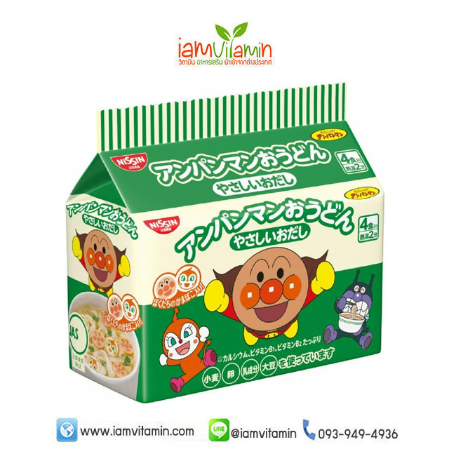 Nissin Anpanman Instant Noodles Udon มาม่าญี่ปุ่น บะหมี่กึ่งสำเร็จรูป อันปังแมน รสอุด้ง ไม่มีผงชูรส เส้นเหนียวนุ่ม มีลูกชิ้นแผ่นเล็กๆ รูปหน้าอันปัง และไบคินแมนในห่อ รสกลมกล่อม เด็กทานได้ ผู้ใหญ่ทานดี ถูกใจเด็กๆแน่นอน ต้องลอง 1 ห่อ มี 4 ซองย่อย