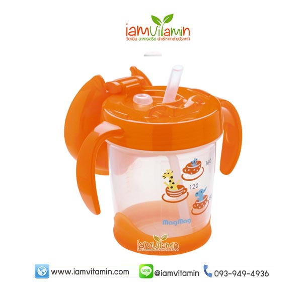 ถ้วยหัดดื่ม Pigeon MagMag Step 3 200ml สีส้ม เหมาะสำหรับเด็กตั้งแต่ 8 เดือนขึ้นไป ให้เด็กเริ่มฝึกดูดจากหลอด เพื่อให้สามารถดื่มน้ำจากแก้วได้ เหมือนผู้ใหญ่ เมื่อฝาปิดสนิท ของเหลวภายในถ้วยจะไม่รั่วซึมออกมา