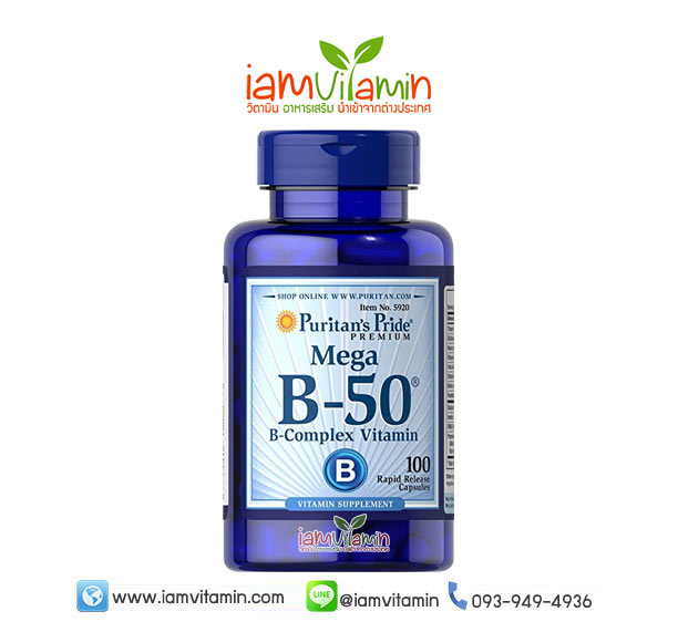 Puritan’s Pride Vitamin B-50 Complex 50 mg ( Puritan วิตามินบีรวม ) เป็นอาหารเสริมสูตรพิเศษจากวิตามินหลายชนิดที่ทำงานได้ดีร่วมกันเพื่อบำรุงและเพิ่มประสิทธิภาพการทำงานของระบบประสาท นอกจากนี้ อาหารเสริม Puritan วิตามินบีรวม ยังเพิ่มประสิทธิภาพการเผาผลาญพลังงานของร่างกาย ส่วนประกอบที่สำคัญในวิตามินบีคอมเพล็กซ์แต่ละชนิดจะดำเนินบทบาทหน้าที่ ที่ไม่ซ้ำกันในการรักษากระบวนการสำคัญต่างๆของร่างกาย หรือระบบเมตาบอลิซึมที่เหมาะสม ช่วยให้กระบวนการต่างๆทำงานและดำเนินไปเป็นอย่างดี ผลิตภัณฑ์นี้ให้ส่วนประกอบที่สำคัญอาทิเช่น B-1, B-2, Niacin, B-6, Inositol, PABA, Pantothenic Acid , Choline Bitartrate, B-12 , Biotin และ Folic Acid