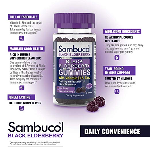 - IMMUNE SUPPORT FOR THE WHOLE FAMILY: Sambucol elderberry gummies taste great & are free from gluten, artificial colors & sweeteners. Adults & kids can take them as an alternative to syrup year round, whether at home or on the go