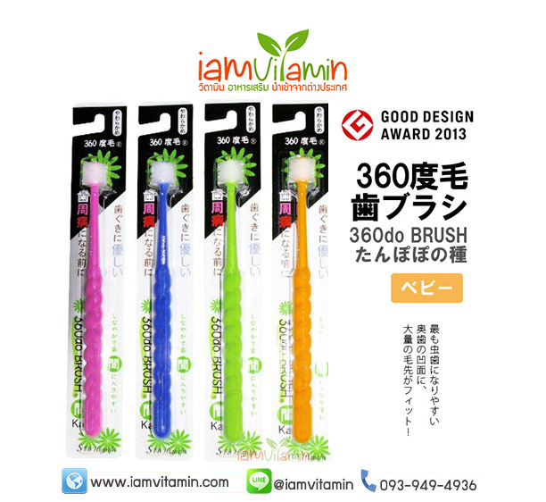 แปรงสีฟัน 360 องศา 360Do Brush สำหรับเด็ก 6ปี-ผู้ใหญ่ แปรงสีฟันขนแปรงรอบด้าน 360 องศา ได้รับรางวัล Good Design Award 2013 จากประเทศญี่ปุ่น ทำให้การใช้งานในเด็กเล็กเป็นเรื่องง่าย สามารถทำความสะอาดในช่องปากได้ทุกทิศทางในเวลาที่สั้นลง ด้วยขนแปรงที่อ่อนนุ่ม มีความละเอียดของขนแปรงสูงมากกว่าแปรงแบบทั่วไป