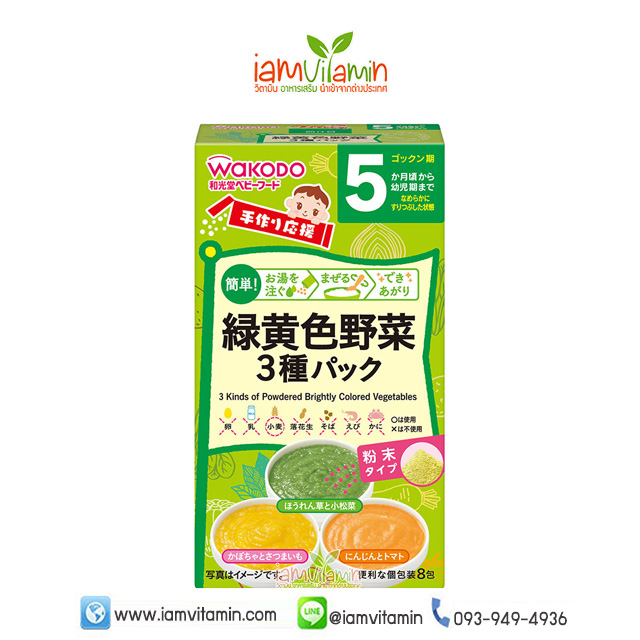 Wakodo Baby Food 3 kinds of Green and Yellow Vegetables อาหารเด็กสำเร็จรูป อร่อยแบบธรรมชาติ
