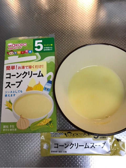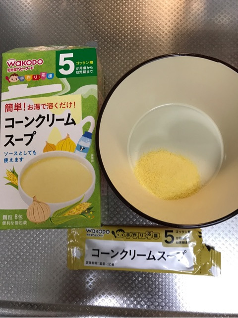 ●コーンクリームスープ/スイートコーンパウダー、脱脂粉乳、乳糖、でん粉、全粉乳、ぶどう糖、デキストリン、食塩、たまねぎエキス、酸化防止剤(ビタミンE)