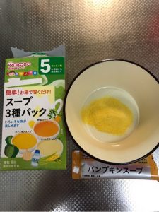 ●パンプキンスープ/乳糖、でん粉、脱脂粉乳、パンプキンパウダー、デキストリン、全粉乳、ぶどう糖、食塩、たまねぎエキス、酸化防止剤(ビタミンE)